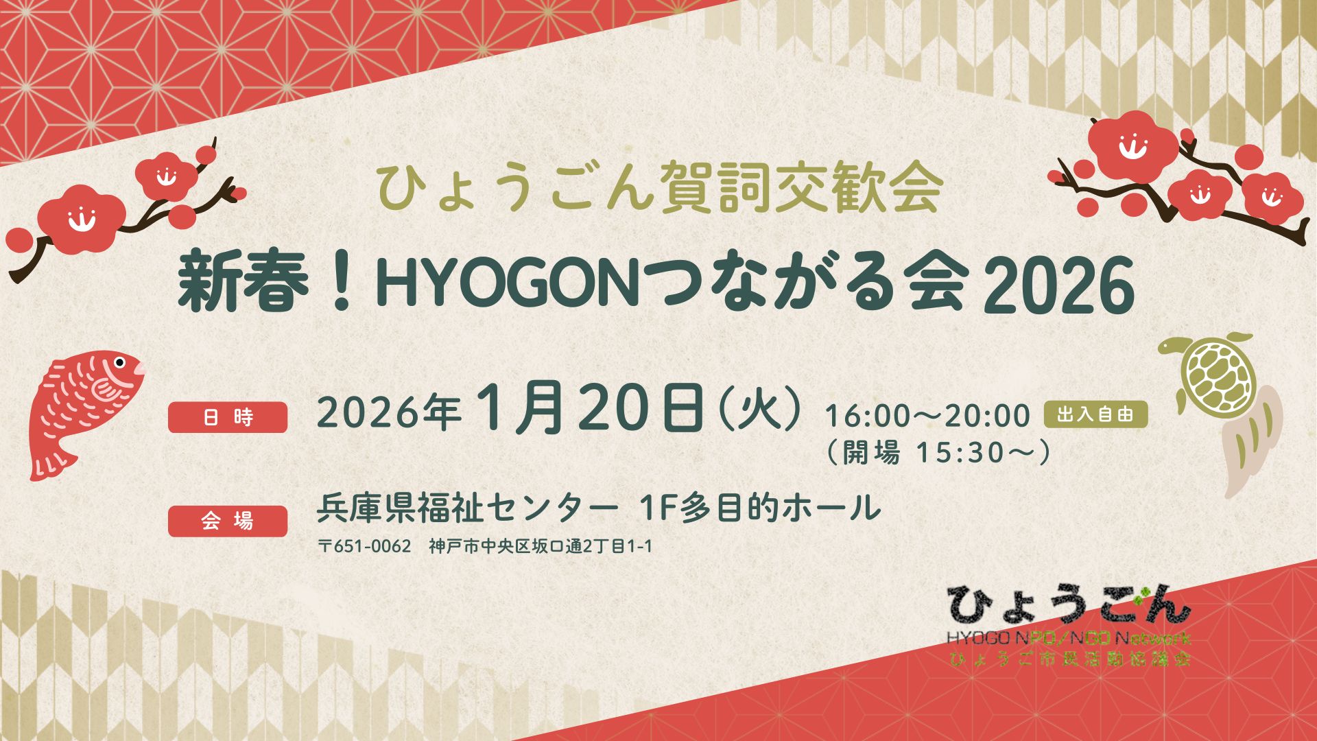 HYOGON新春企画、賀詞交歓会を開催します。HYOGON会員団体の皆さまはもちろん、地域の様々な活動に関わる個人や団体、企業、また、行政職員の方など、どなたでも気軽にご参加いただける交流会です。新たな出会いや交流を深め、ネットワークを広げる機会として、ぜひご参加ください。